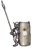 獣鬼 大型の夜種。伝承では「ちいさないきもの」だと言われていたが、大きかった。 日光を浴びると石になるとの伝説もあったが、特にそういう事はなかった。 青灰色の丈夫な皮膚を持ち、腕力と体力にすぐれ、戦闘指揮官として使われる。 |